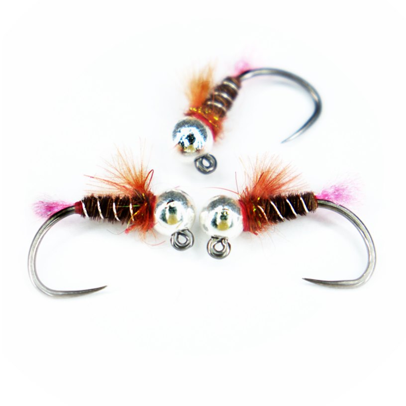 Scheda Tecnica (Materiali Utilizzati) Amo: Jig Bead: tungsteno slotted silver Corpo: coda di fagiano Torace: dubbing di lepre e CDC color mattone Rigaggio: filo di rame Collarino: filo di montaggio rosso Codine (Tag): Antron Yarn Pink
